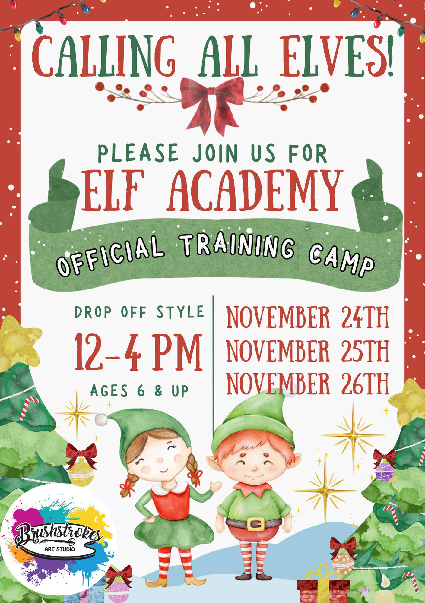 Just Drop the Kids off for 4 HOURS of CREATIVITY!!! Please send your child with a sack lunch - elves work up an appetite!!!