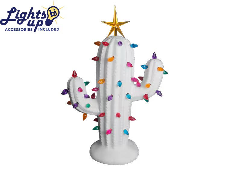 Your home will be lookin' sharp with this awesome ceramic Lighted Christmas Cactus! This piece comes with the light kit that includes base light bulb, colorful mini lights, and yellow star topper. Add a little desert to your holiday decor! Get yours today! Large Cactus Measures 10½" H x 8½" W x 4" L